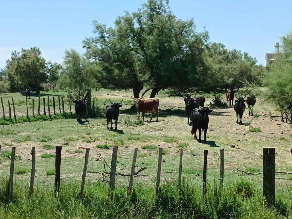 Pour les taureaux et les chevaux camarguais, ces zones servent de pâturage naturel. Comme l’herbe y est rare, les animaux développent robustesse et endurance. Les sansouïres jouent un rôle écologique clé, elles maintiennent l’équilibre fragile entre eau douce, eau salée et terres sèches, et assurent la préservation de la biodiversité camarguaise.